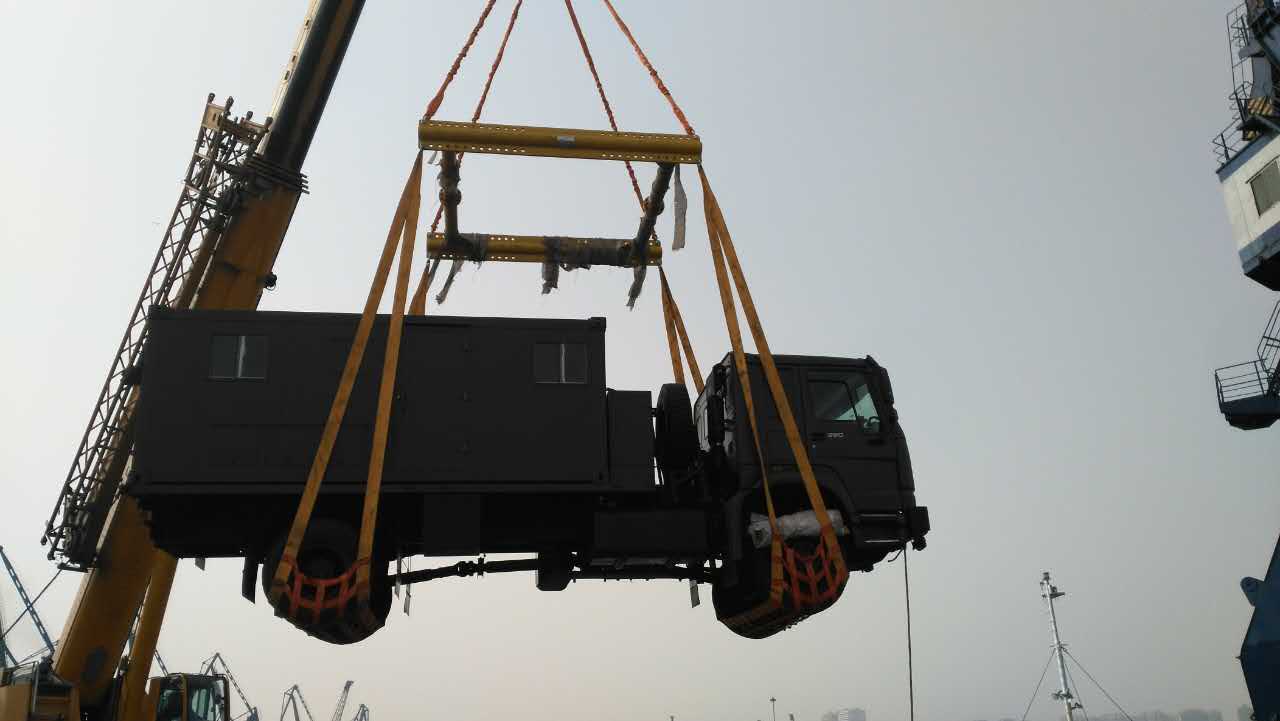军车吊具由大吨位柔性吊带,可拆卸平衡框架,合成纤维抱胎器吊网组成,安全系数高,强度大,轻便。
